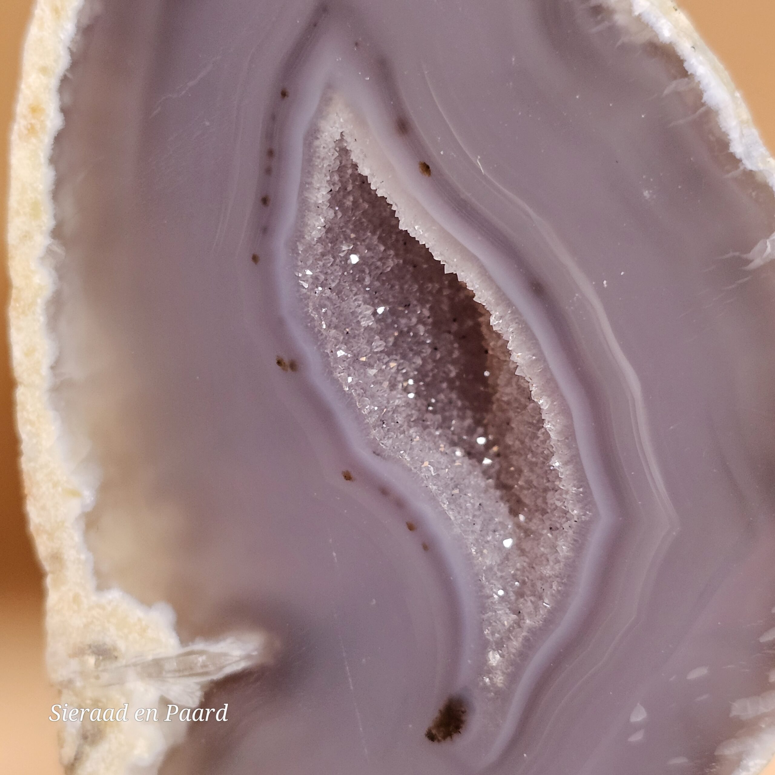 Agaat is een steen die werkt aardend, stabiliserend en beschermend. De kalmerende werking van de steen, laat je veilig voelen en zorgt voor zowel geestelijke als emotionele balans en rust. Het helpt je om jezelf te accepteren en helpt je vertrouwen te hebben in jezelf. Het stimuleert de concentratie en analytisch denken en helpt om afstand te nemen en objectiever naar dingen, en jezelf, te kijken. Het helpt om doelen te stellen voor jezelf en hier naar toe te werken. Hierdoor stimuleert het persoonlijke groei en ontwikkeling.