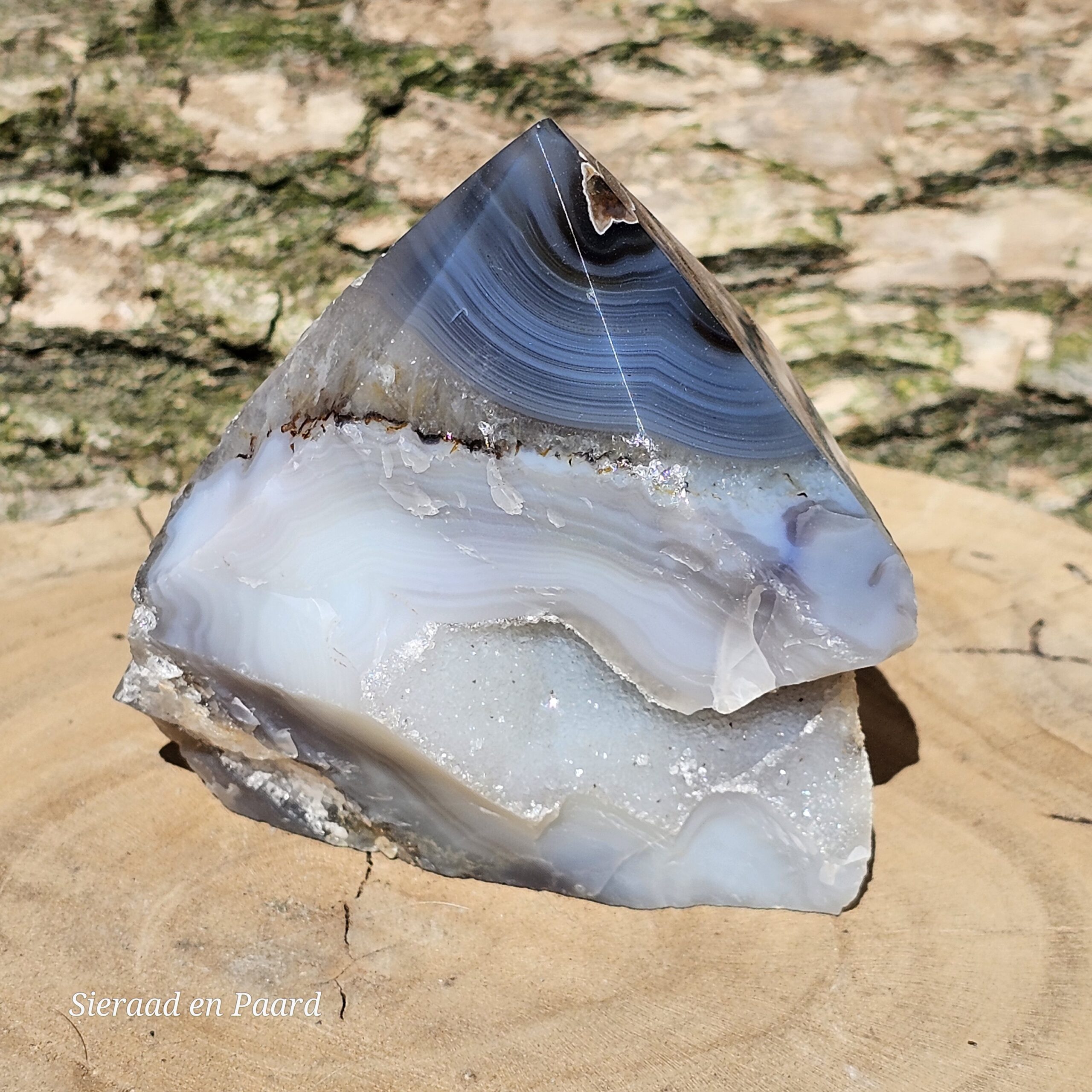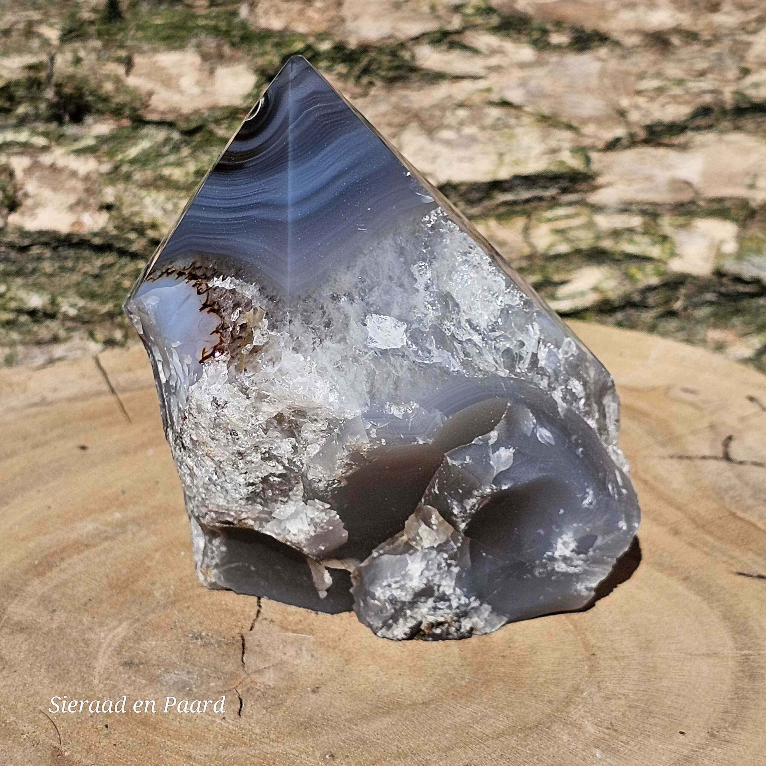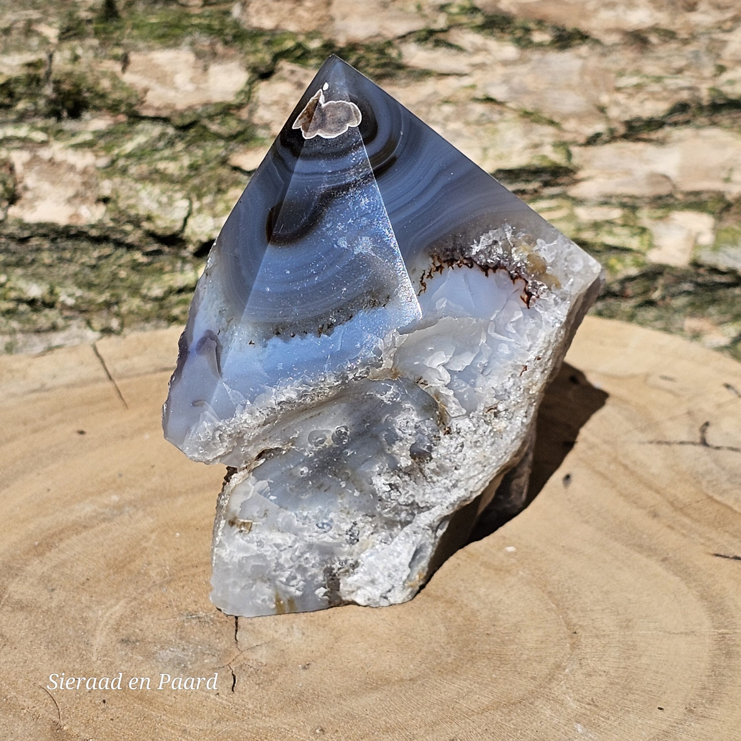 Agaat is een steen die werkt aardend, stabiliserend en beschermend. De kalmerende werking van de steen, laat je veilig voelen en zorgt voor zowel geestelijke als emotionele balans en rust. Het helpt je om jezelf te accepteren en helpt je vertrouwen te hebben in jezelf. Het stimuleert de concentratie en analytisch denken en helpt om afstand te nemen en objectiever naar dingen, en jezelf, te kijken. Het helpt om doelen te stellen voor jezelf en hier naar toe te werken. Hierdoor stimuleert het persoonlijke groei en ontwikkeling.