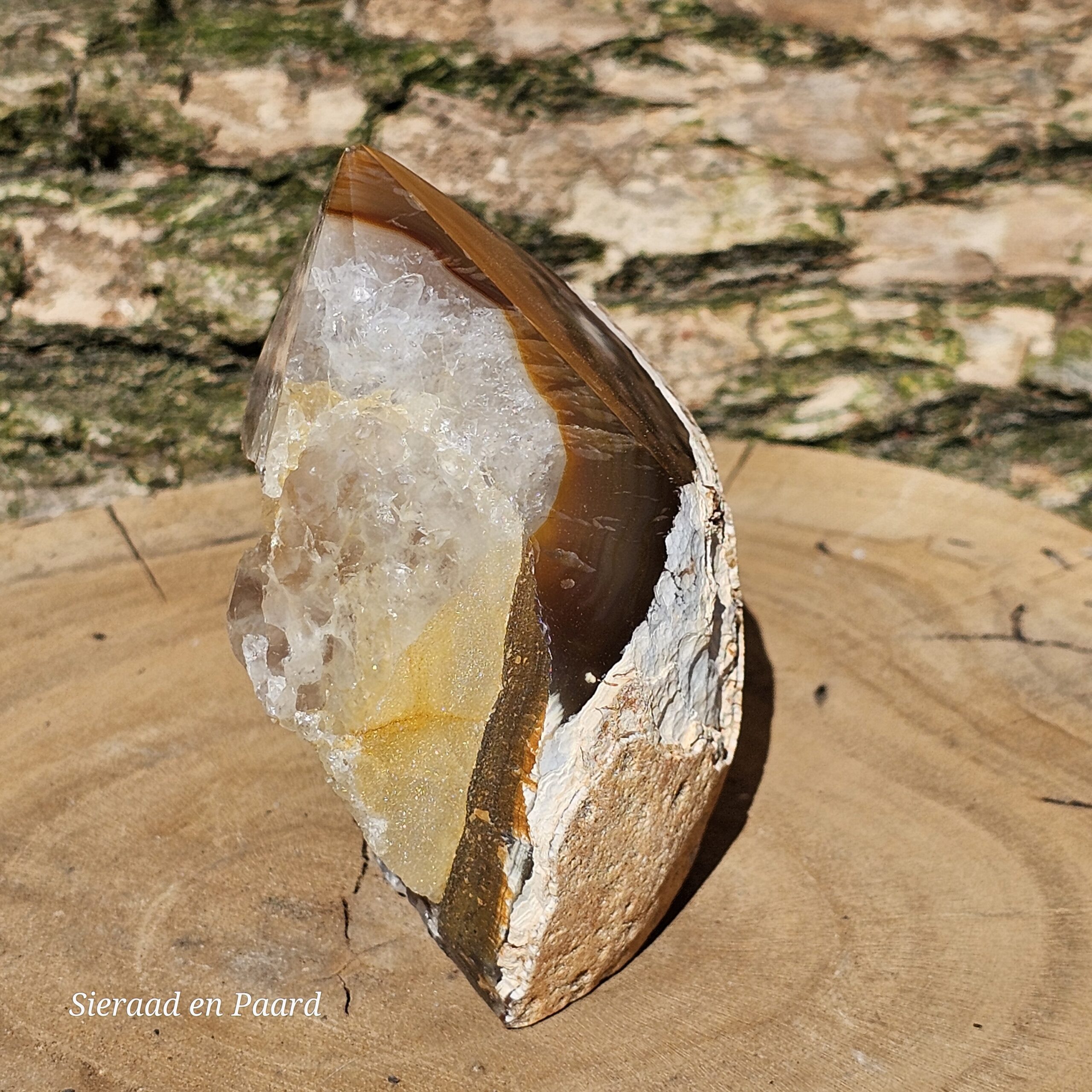 Agaat is een steen die werkt aardend, stabiliserend en beschermend. De kalmerende werking van de steen, laat je veilig voelen en zorgt voor zowel geestelijke als emotionele balans en rust. Het helpt je om jezelf te accepteren en helpt je vertrouwen te hebben in jezelf. Het stimuleert de concentratie en analytisch denken en helpt om afstand te nemen en objectiever naar dingen, en jezelf, te kijken. Het helpt om doelen te stellen voor jezelf en hier naar toe te werken. Hierdoor stimuleert het persoonlijke groei en ontwikkeling.