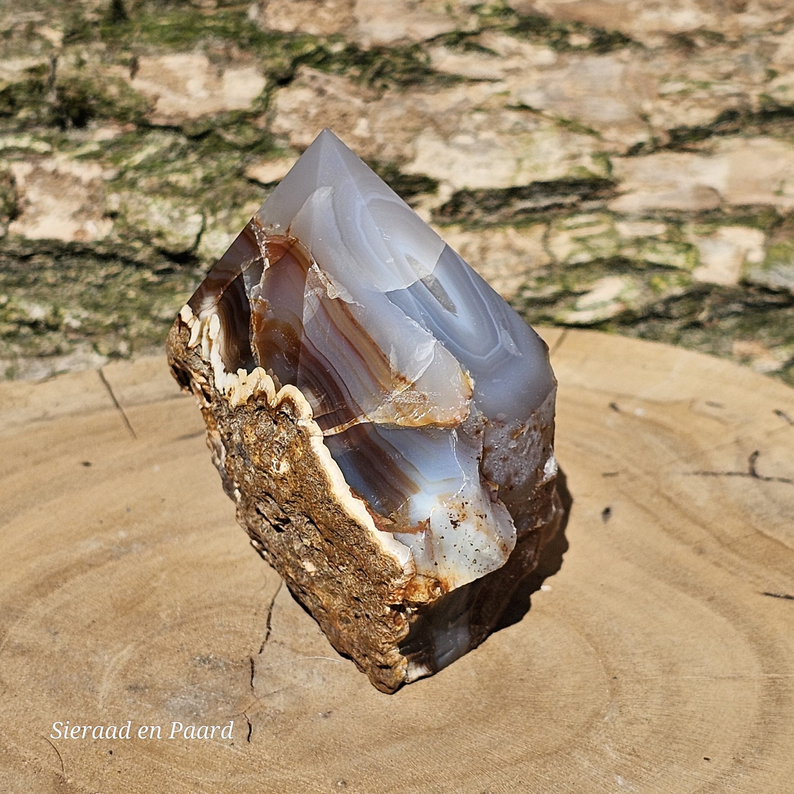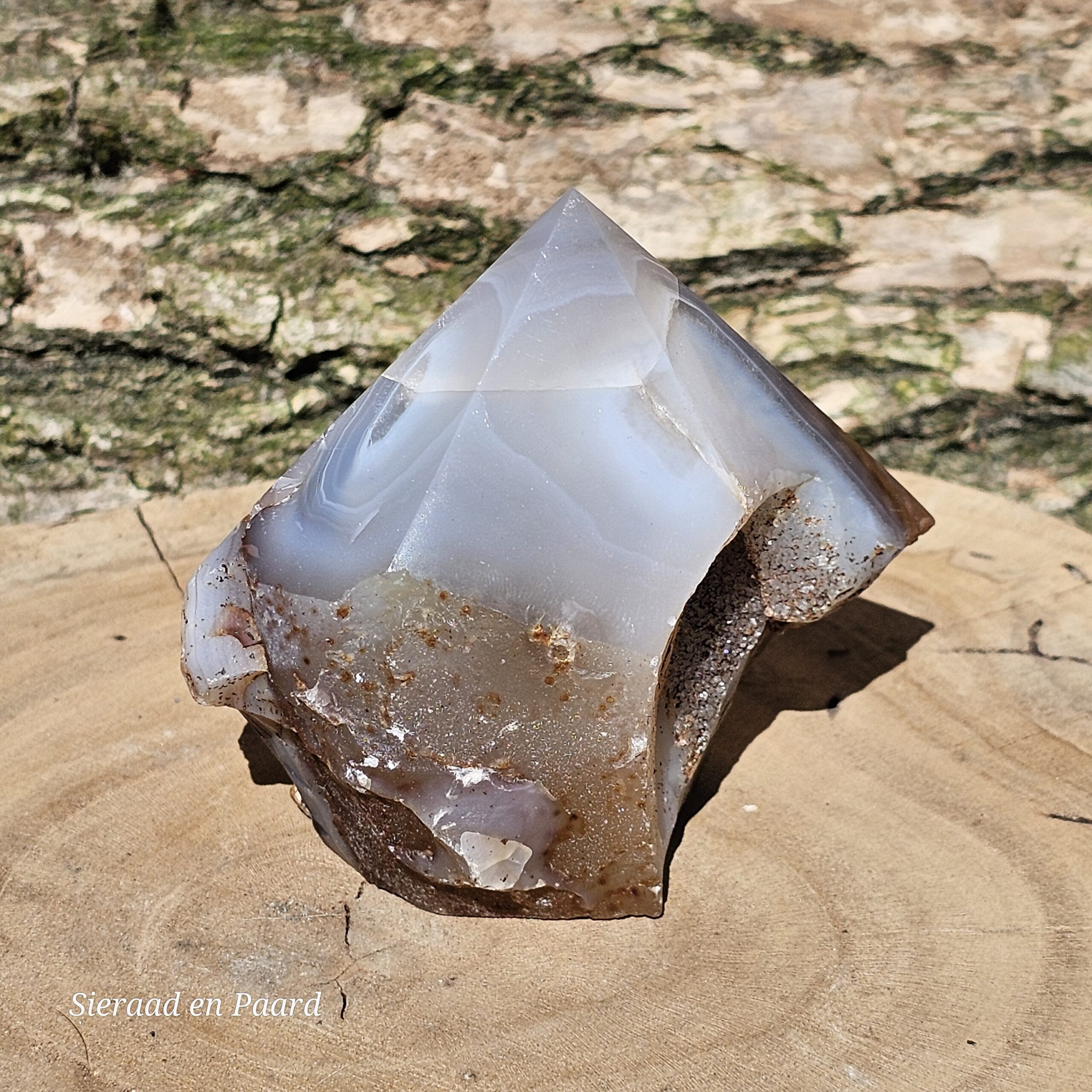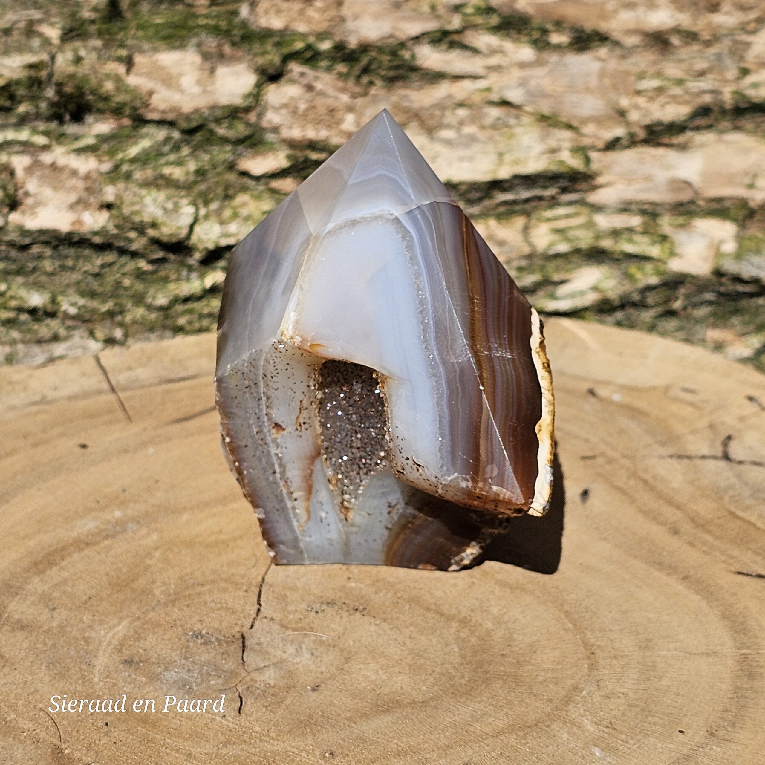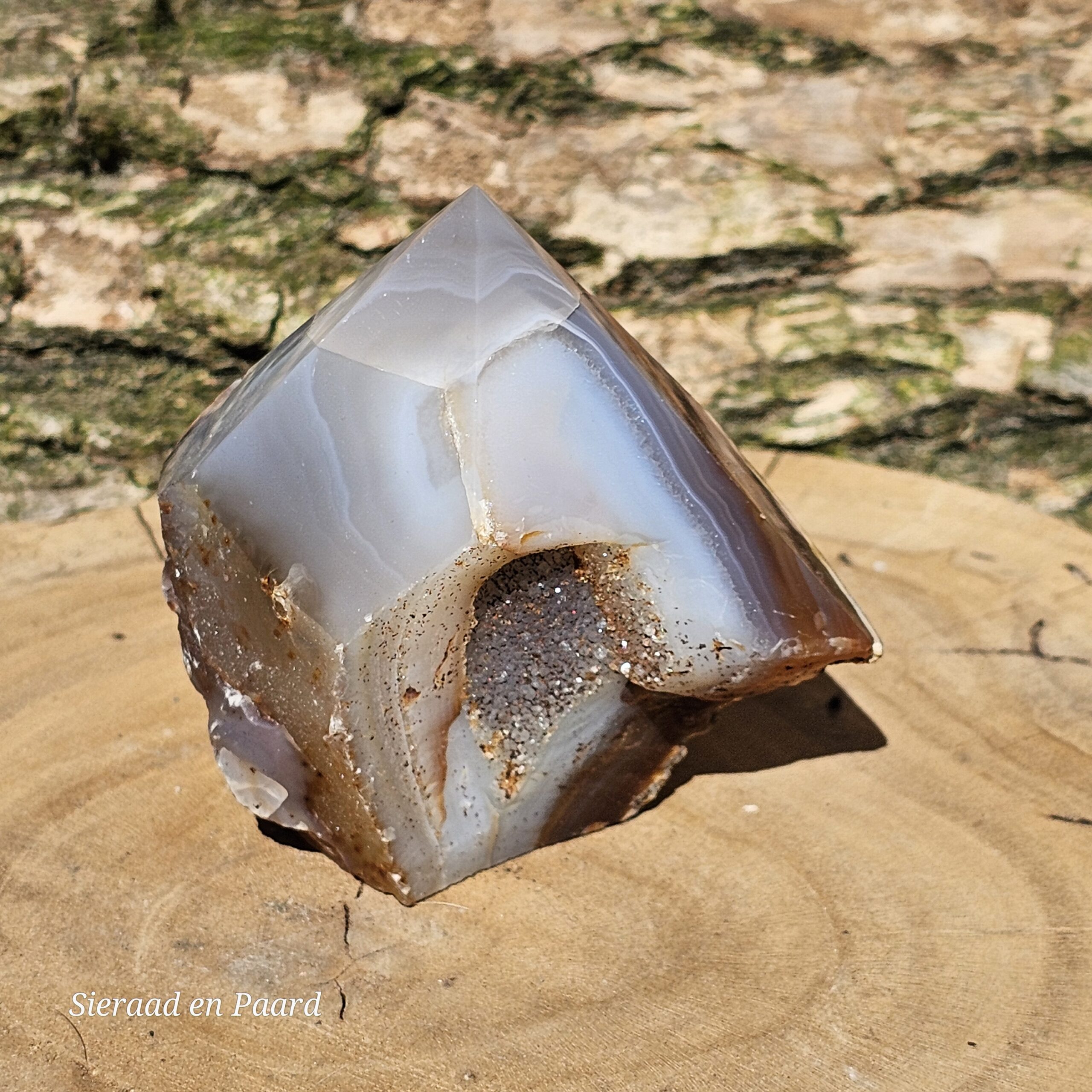 Agaat is een steen die werkt aardend, stabiliserend en beschermend. De kalmerende werking van de steen, laat je veilig voelen en zorgt voor zowel geestelijke als emotionele balans en rust. Het helpt je om jezelf te accepteren en helpt je vertrouwen te hebben in jezelf. Het stimuleert de concentratie en analytisch denken en helpt om afstand te nemen en objectiever naar dingen, en jezelf, te kijken. Het helpt om doelen te stellen voor jezelf en hier naar toe te werken. Hierdoor stimuleert het persoonlijke groei en ontwikkeling.