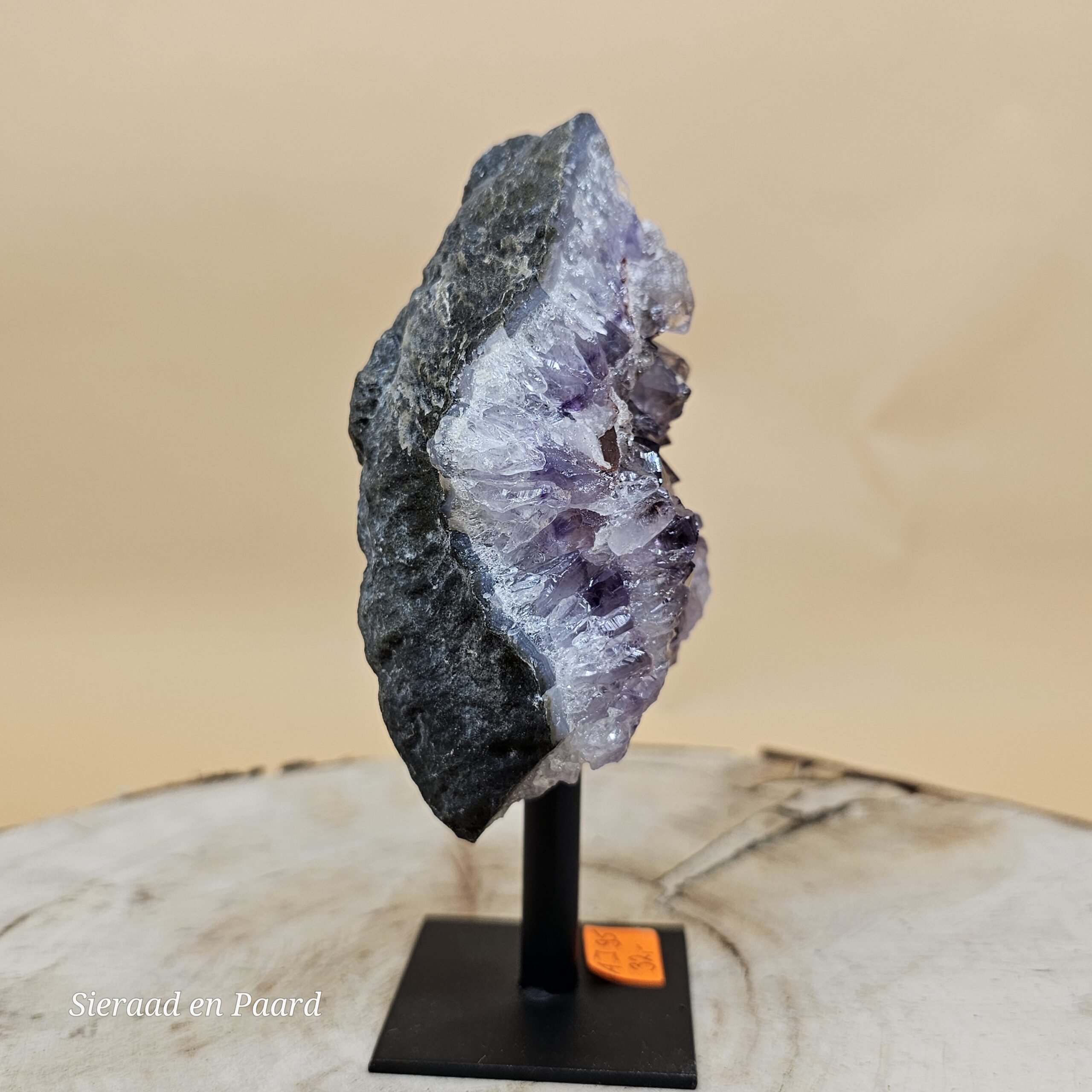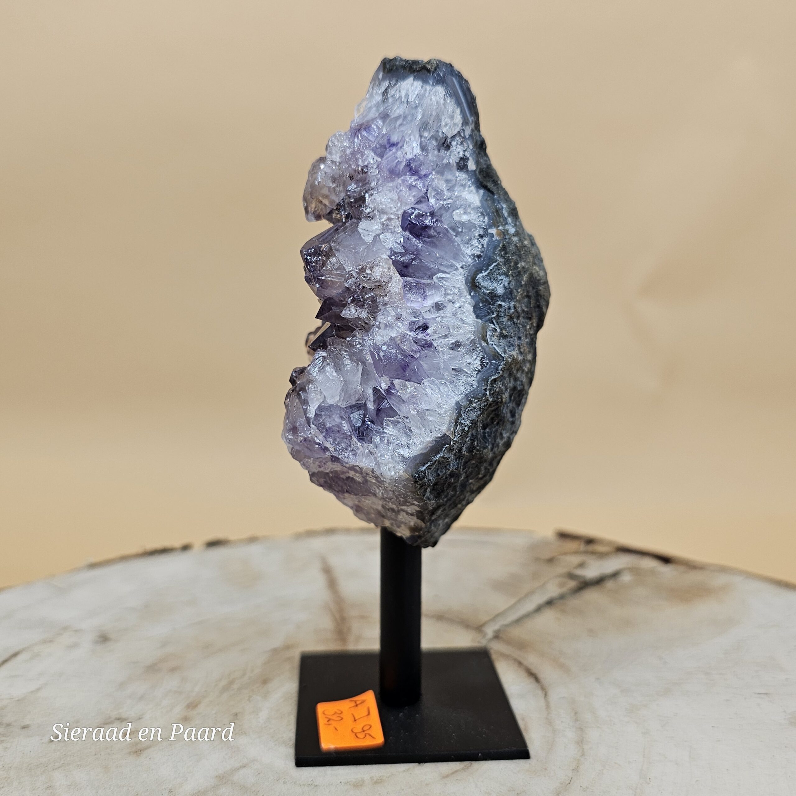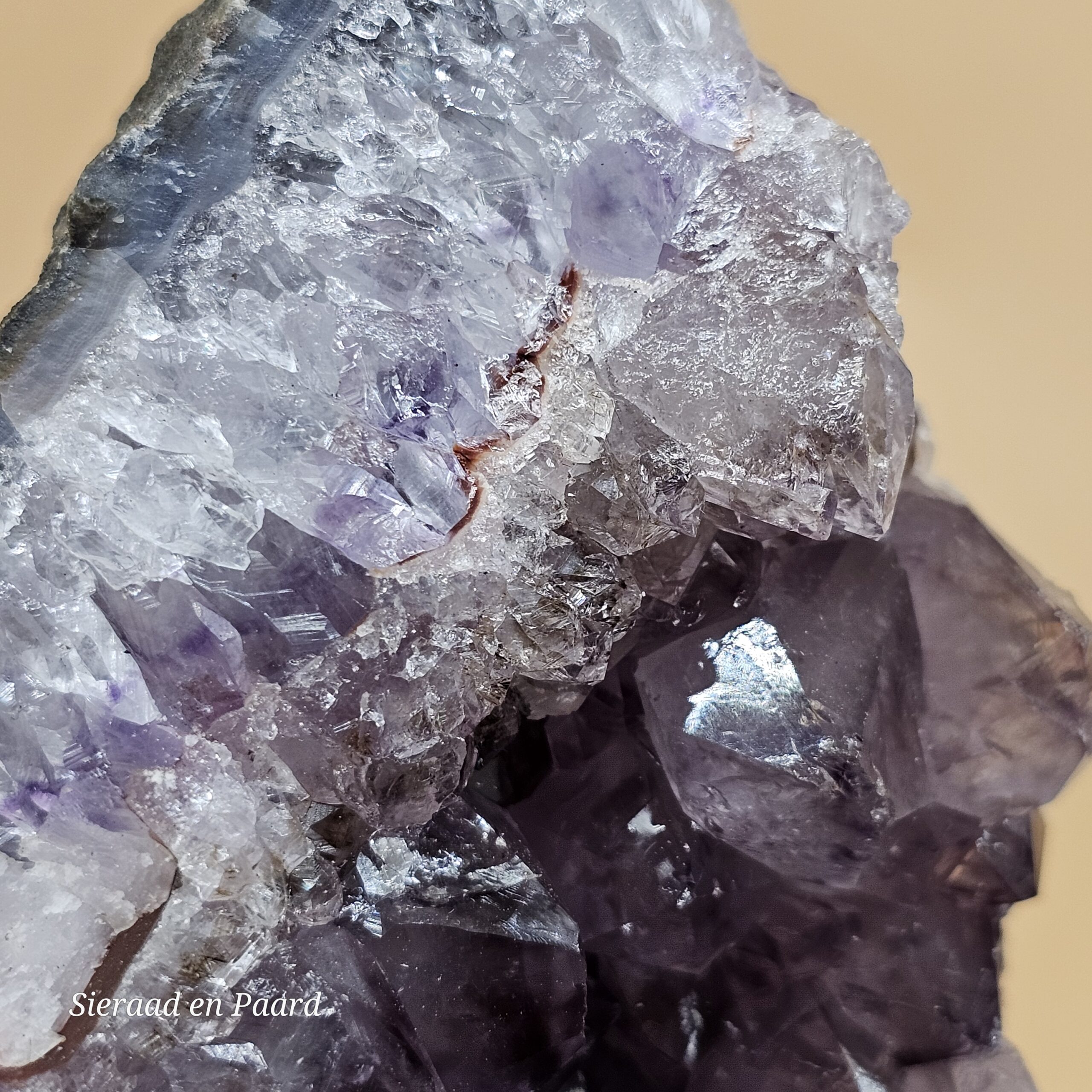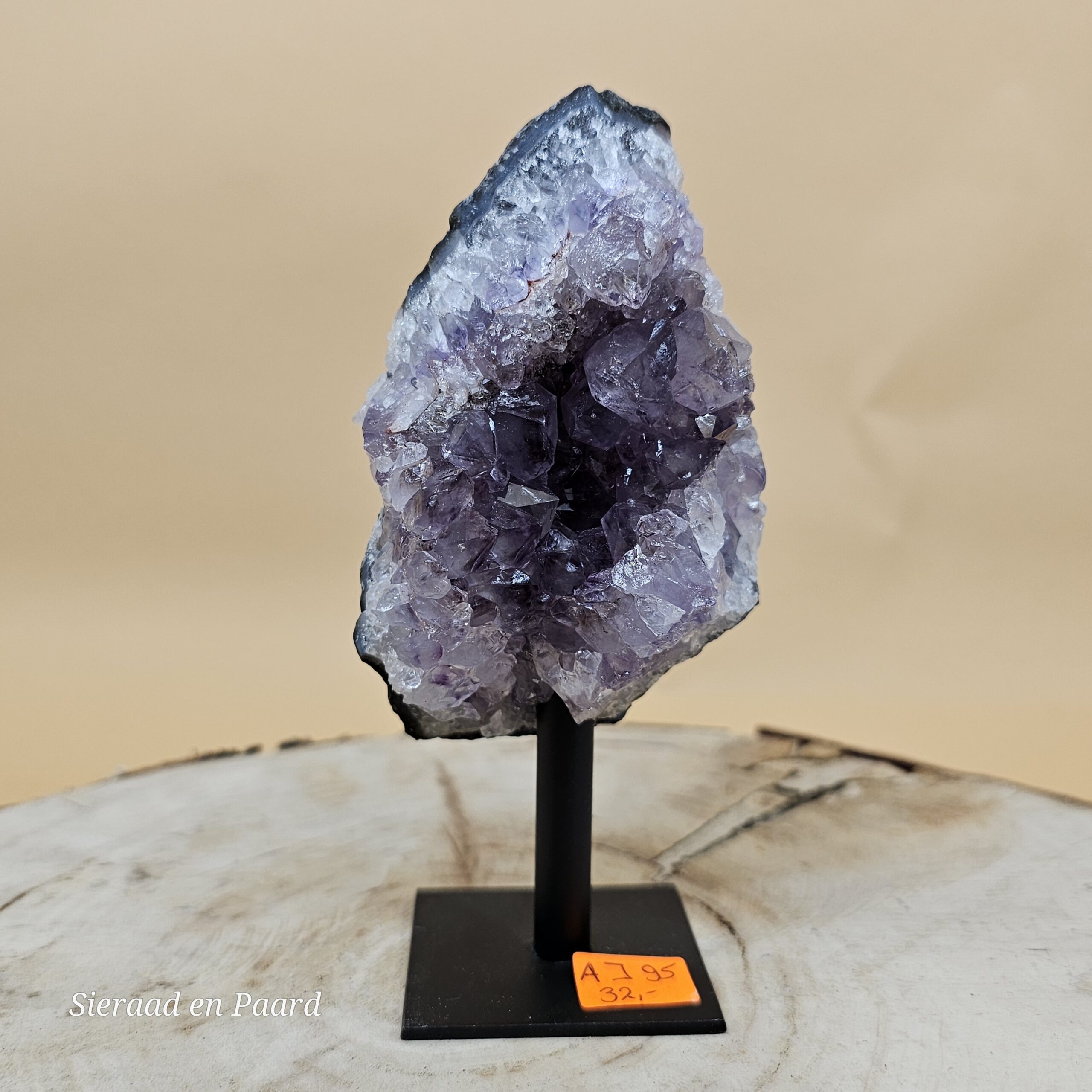 Amethist heeft een beschermende en zuiverende werking. De steen bevordert zelfinzicht en helpt je om eerlijk te zijn naar jezelf toe. Het helpt je bijvoorbeeld om verslavingen te onderkennen en aan te pakken.