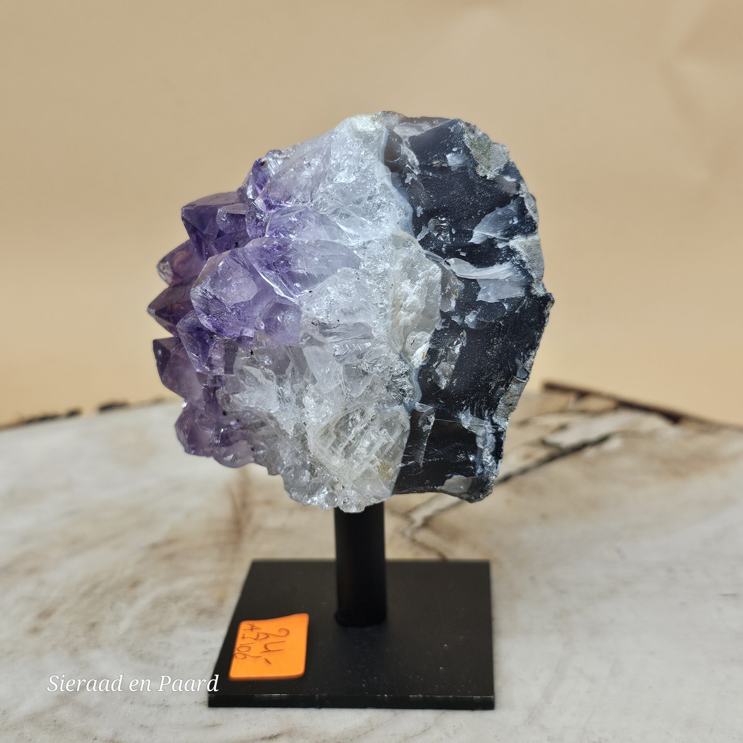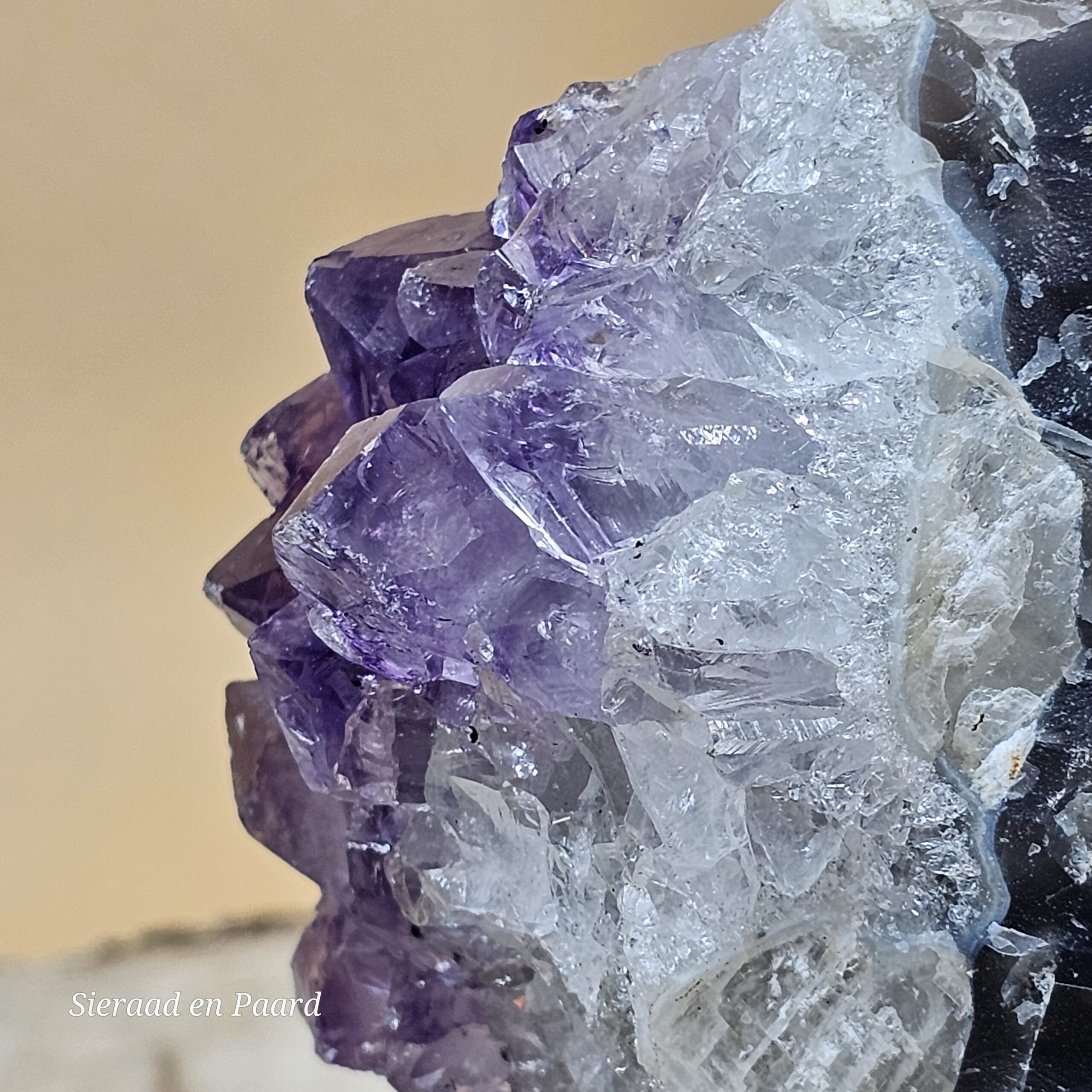 Amethist heeft een beschermende en zuiverende werking. De steen bevordert zelfinzicht en helpt je om eerlijk te zijn naar jezelf toe. Het helpt je bijvoorbeeld om verslavingen te onderkennen en aan te pakken.