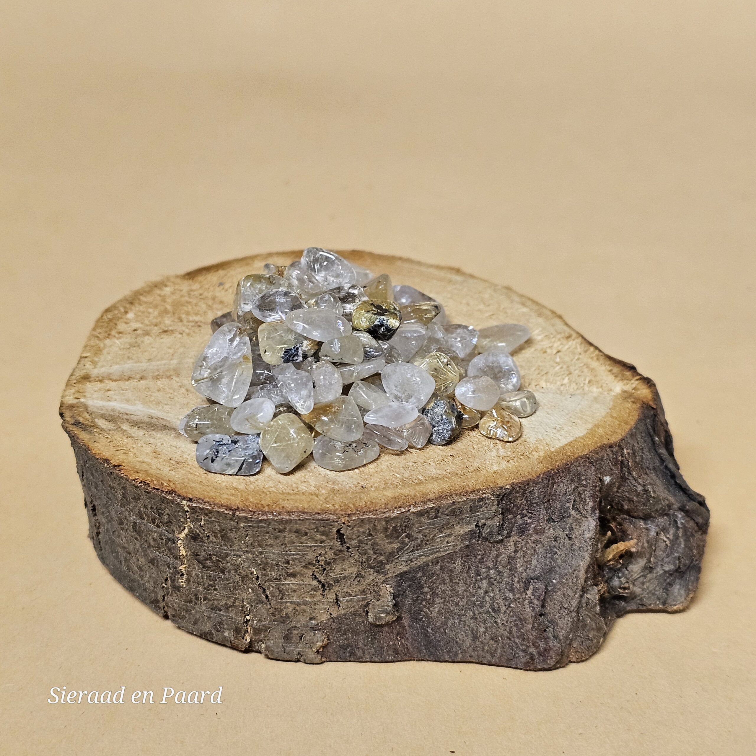 Leuk zakje voor de kinderen met kleine stukjes gemengde edelstenen en in ieder zakje een extra verassing.