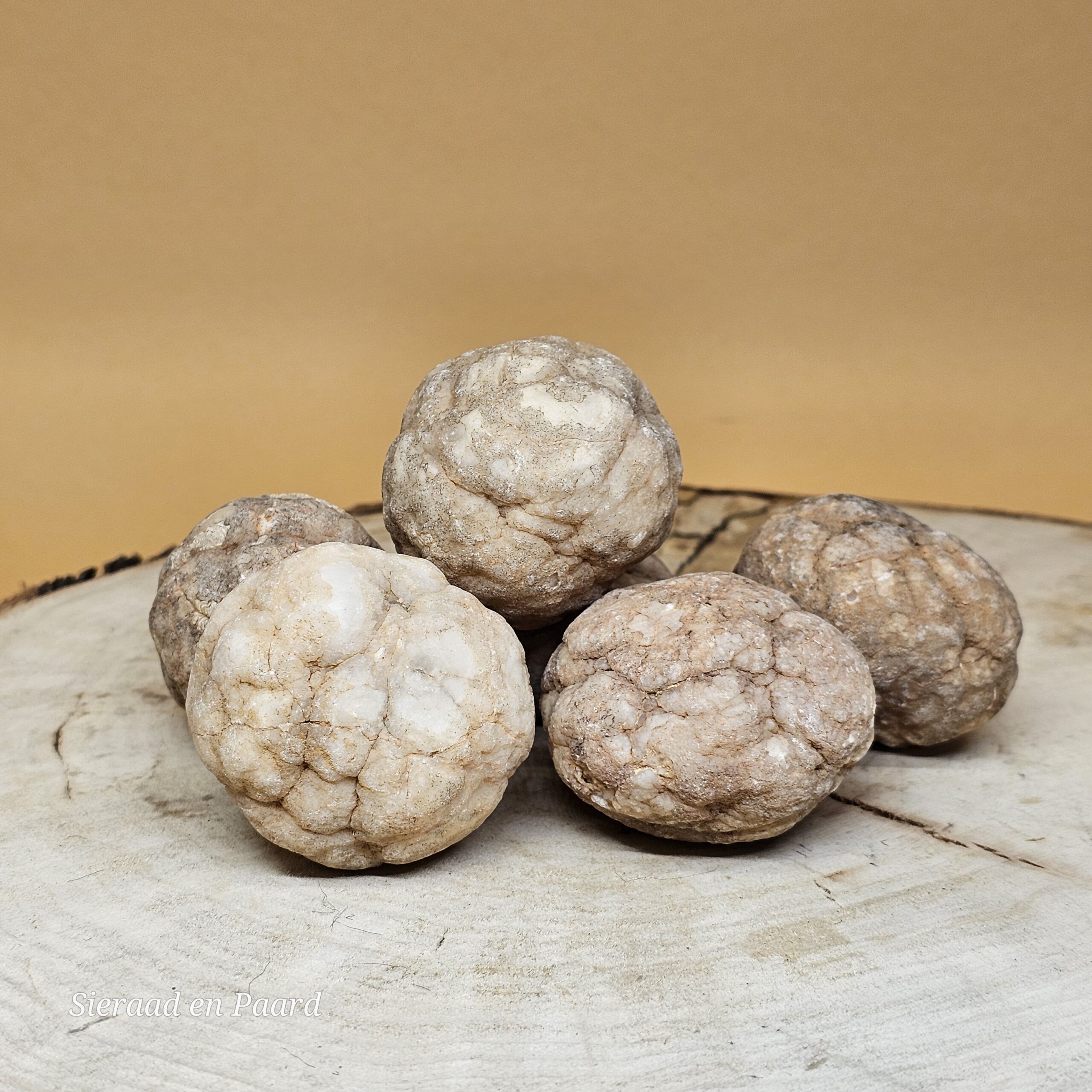De Marokkaanse kwarts geode wordt gevonden in Marokko. De buitenwand bestaat uit Calciet en gaat dan over in Bergkristal. Dit Bergkristal kristalliseert gedurende het afkoelingsproces uit in kristallen. Elke Bergkristal geode is anders in kristal en kristalstructuur van binnen dus iedere bol is uniek! De ene geode heeft grote kristallen en de andere hele fijne. Dat blijft elke keer een verrassing.