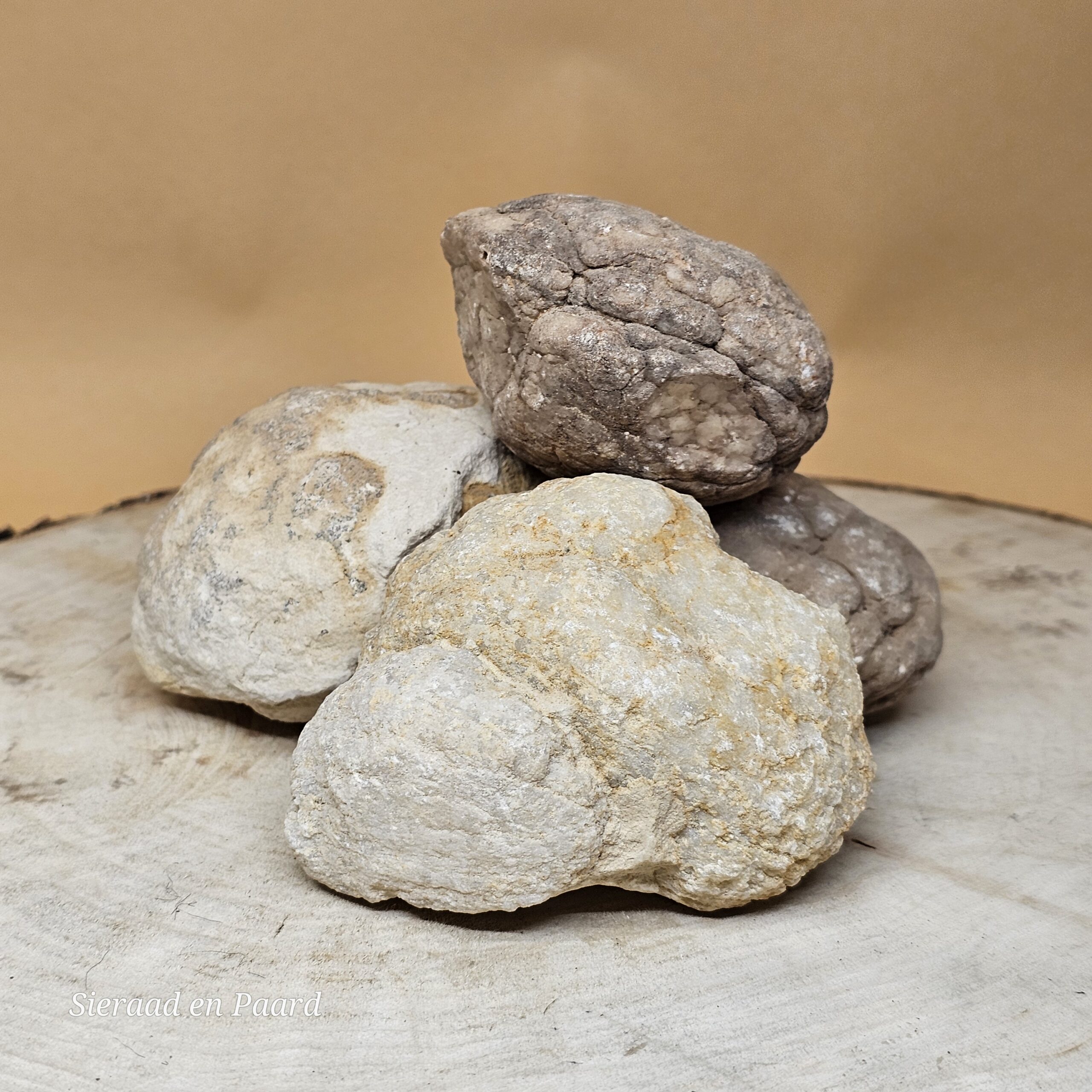 De Marokkaanse kwarts geode wordt gevonden in Marokko. De buitenwand bestaat uit Calciet en gaat dan over in Bergkristal. Dit Bergkristal kristalliseert gedurende het afkoelingsproces uit in kristallen. Elke Bergkristal geode is anders in kristal en kristalstructuur van binnen dus iedere bol is uniek! De ene geode heeft grote kristallen en de andere hele fijne. Dat blijft elke keer een verrassing.