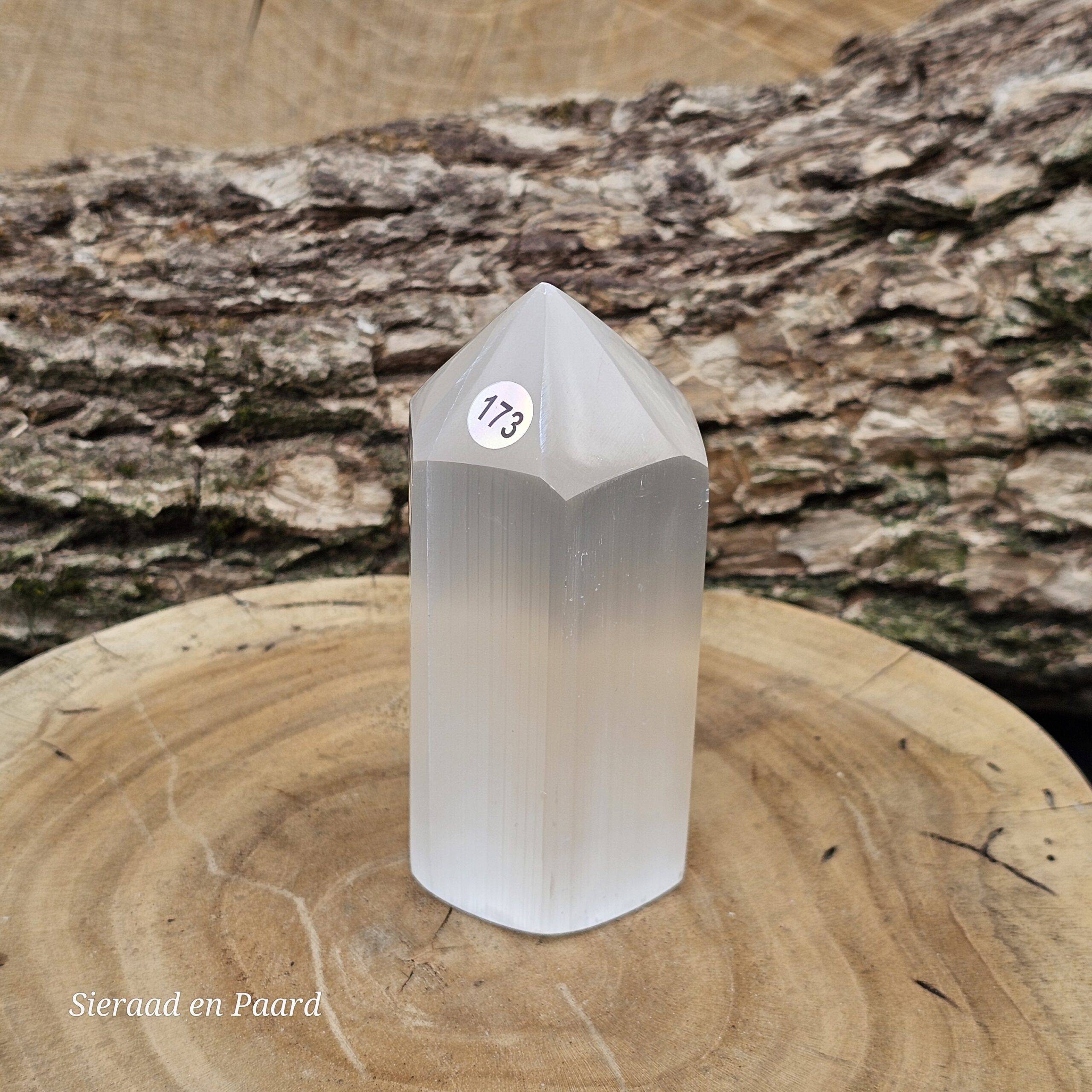 Seleniet is een nieuwetijdsteen die is gekomen om de mensen te helpen engelenenergie in de persoonlijkheid te aarden. De seleniet heeft de kwaliteit om je kracht van universele liefde te laten zien en geeft een heerlijk eenheidsgevoel. Zorgt ervoor dat je vrede ervaart en alleen maar het goede wilt. Een wolk van engelenenergie en engelenvibraties. Seleniet heeft een bijzonder zachte uitstraling die kalmerend werkt. Een goed aura healer: verwijdert negatieve energie uit de aura. Seleniet is ook heel goed om een ruimte mee te zuiveren is verhelderend, geeft inzicht en bewustwording. Seleniet stimuleert de helderziende, telepathische en invoelende vermogens, geeft inzichten en contact met je gidsen. Seleniet schept een vredige ruimte, houdt slechte invloeden tegen. Geestelijk heft het verwarring op, geeft heldere inzichten en het helpt om achterliggende beelden waar te nemen. Zorgt voor bewust inzicht in wat er op onderbewust niveau gebeurt. Seleniet beschermt tegen epileptische aanvallen en neutraliseert kwikvergiftiging uit amalgaam.. Het is een uitstekend kristal voor borstvoeding en het voeden van een kind.