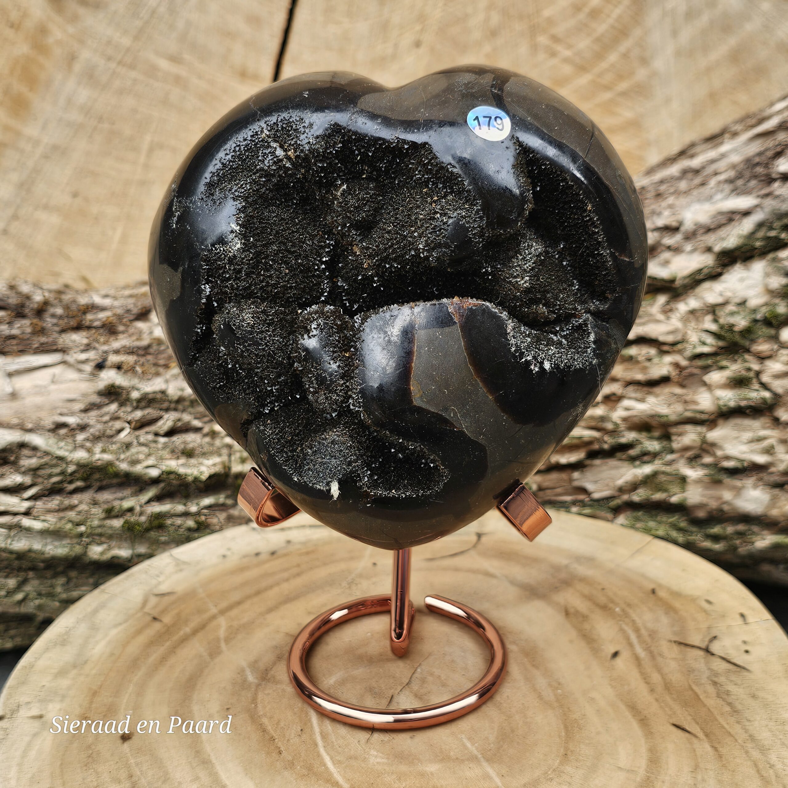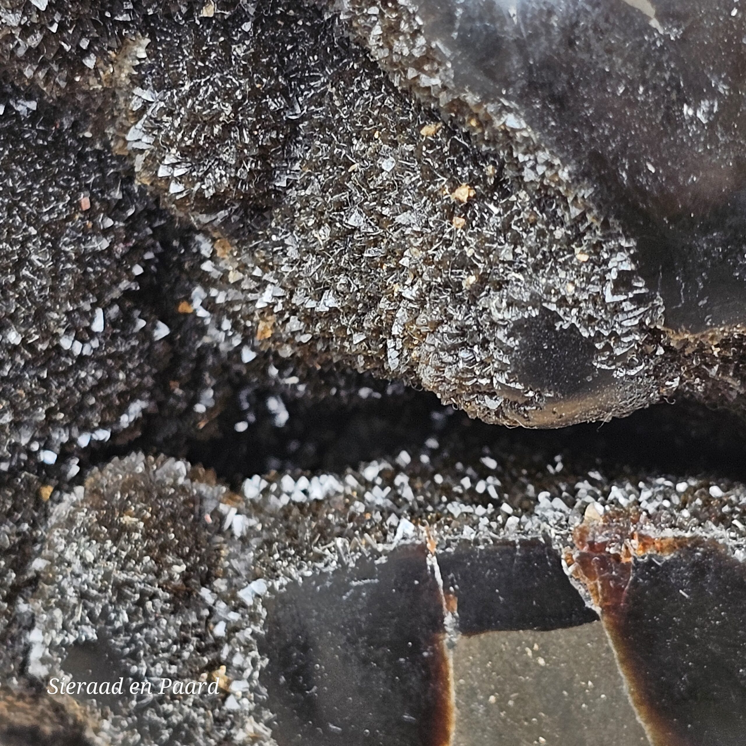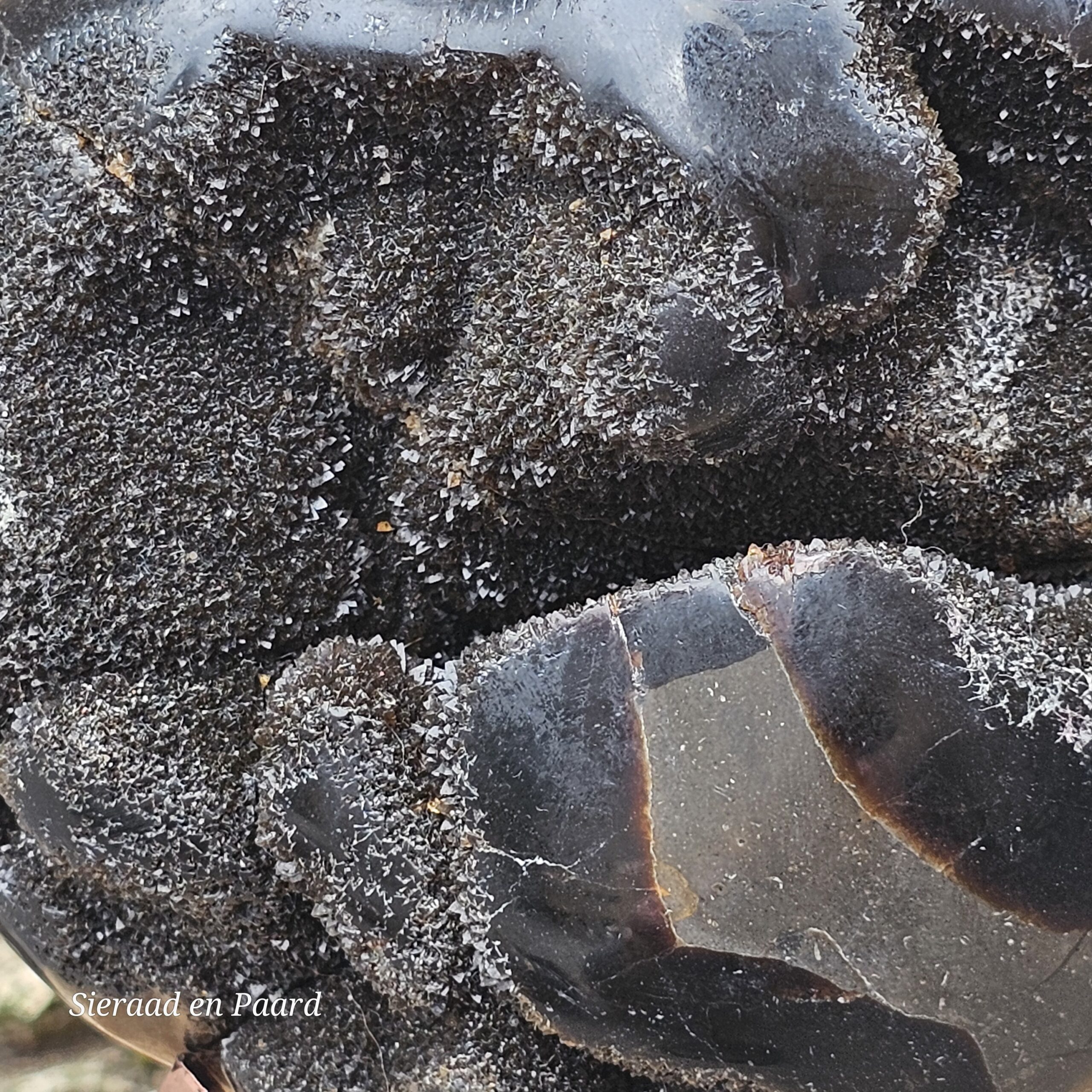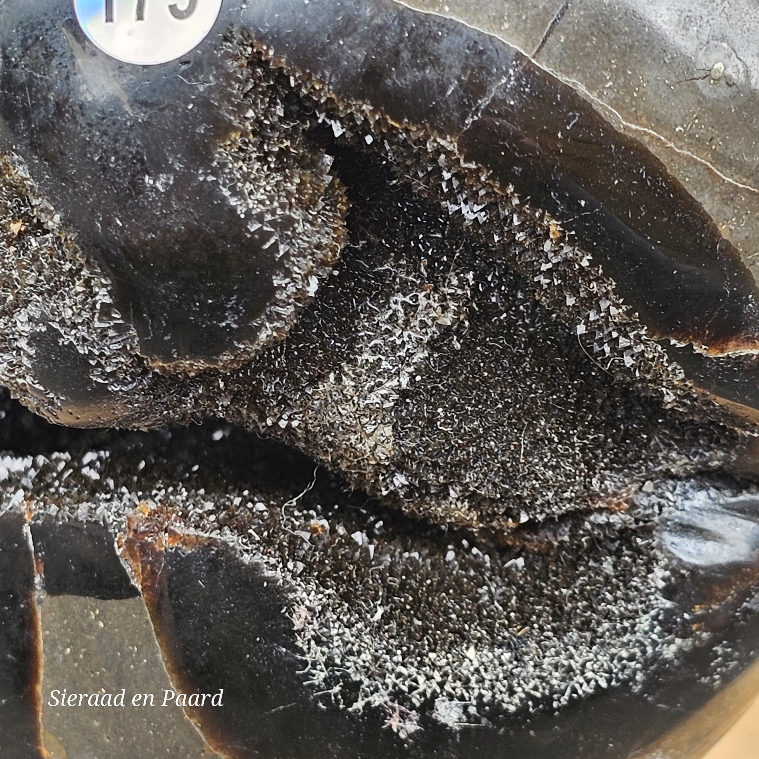 Septarie wordt ook wel Dragon Stone, septarium, drakensteen of schildpaddensteen genoemd, dit komt door zijn uiterlijk. Septarie is een combinatie van diverse soorten stenen samengekomen in een knolvormige samenklitten in kalkhoudende modder. Meestal Calciet met gips, maar ook wel pyriet, Markasiet, Chalcopyriet of sideriet. Septarie heeft de eigenschap je daadkracht en eigenwaarde te schenken. Hij maakt je standvastig en tevens toegankelijk en open. Septarie is een aardende steen die je vrolijkheid geeft en voor balans zorgt in het denken en je gevoel.
